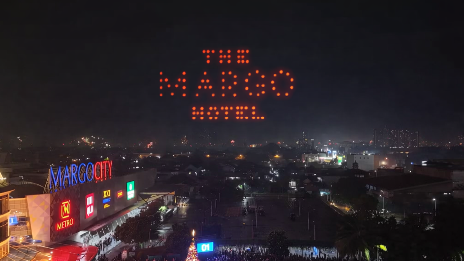 Tak hanya itu, drone juga menampilkan logo Margo City Mall dan logo The Margo Hotel sebagai ikon kawasan prestisius di Kota Depok, serta berbagai visual menarik lainnya yang dirancang secara artistik dan modern, memukau mata para penonton dari berbagai sudut area.