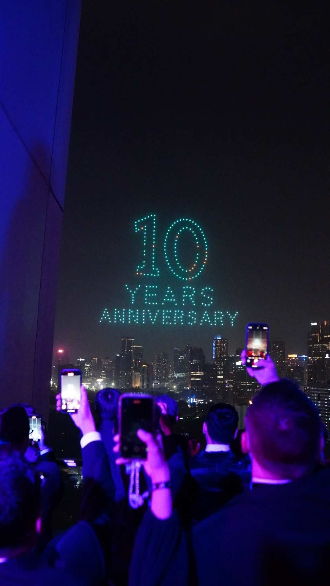 Pertunjukan dimulai pada pukul 22.30 wib sebagai acara penutup dimalam special tersebut, ketika lampu-lampu drone mulai membentuk koreografi indah di udara. Pola dan formasi cahaya yang berubah-ubah memberikan nuansa magis, menjadi simbol perjalanan satu dekade Fairmont Jakarta dalam memberikan pelayanan terbaik dan pengalaman tak terlupakan bagi para tamu.